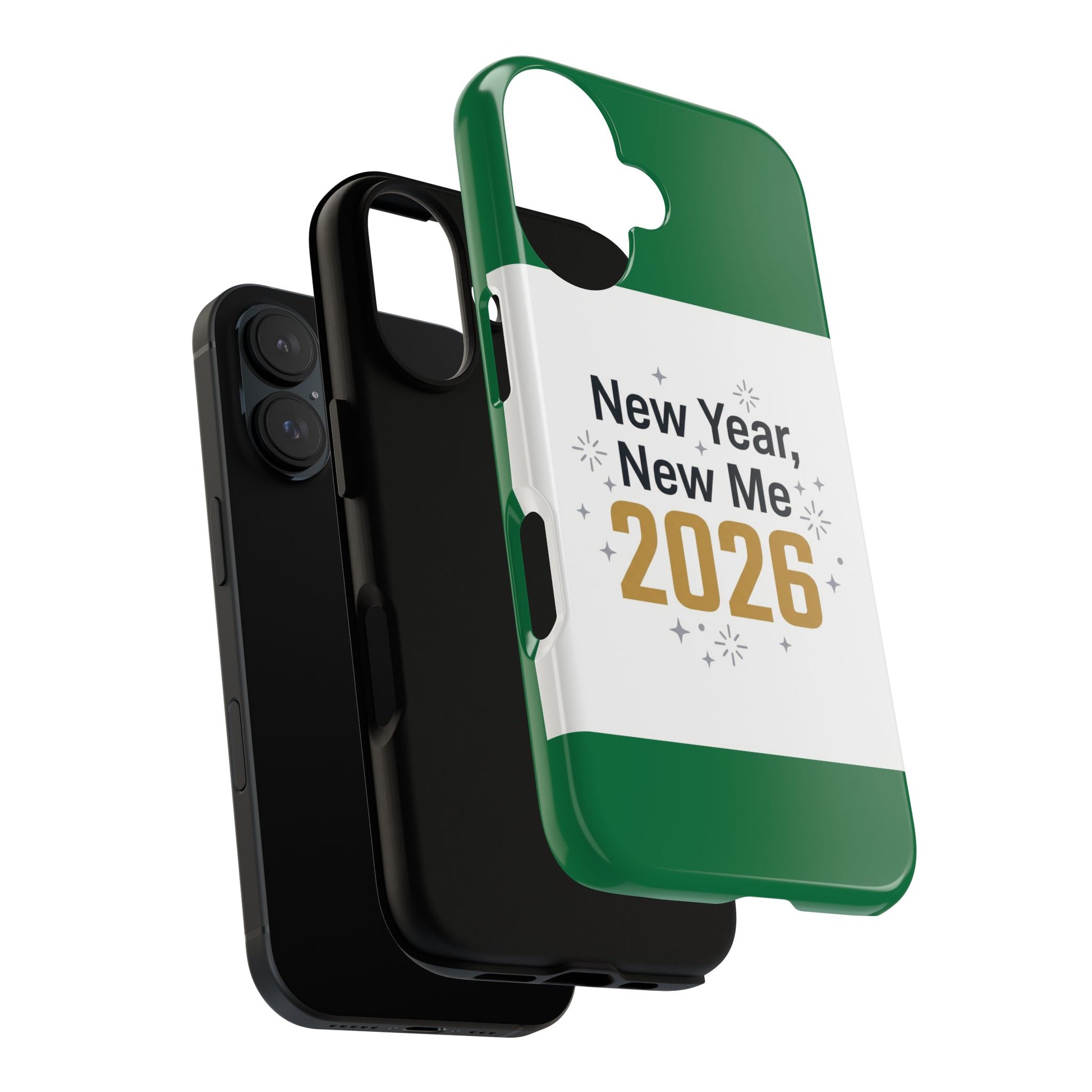 This glossy dual-layer phone case keeps your device safe while carrying a quiet bit of personality. The design reads “New Year, New Me 2026” set against a crisp white panel framed by deep green edges — clean, modern, and celebratory without shouting. The rigid polycarbonate shell and soft TPU silicone liner work together to absorb shocks and resist drops, while the full 3D wrap print retains vivid color and detail. Subtle metallic-gold numerals and small star accents give the case a festive feel for ringing in the year, and the slim profile preserves wireless charging access and clear port openings. It’s made with certified materials and built to withstand everyday life with low maintenance when handled as directed.