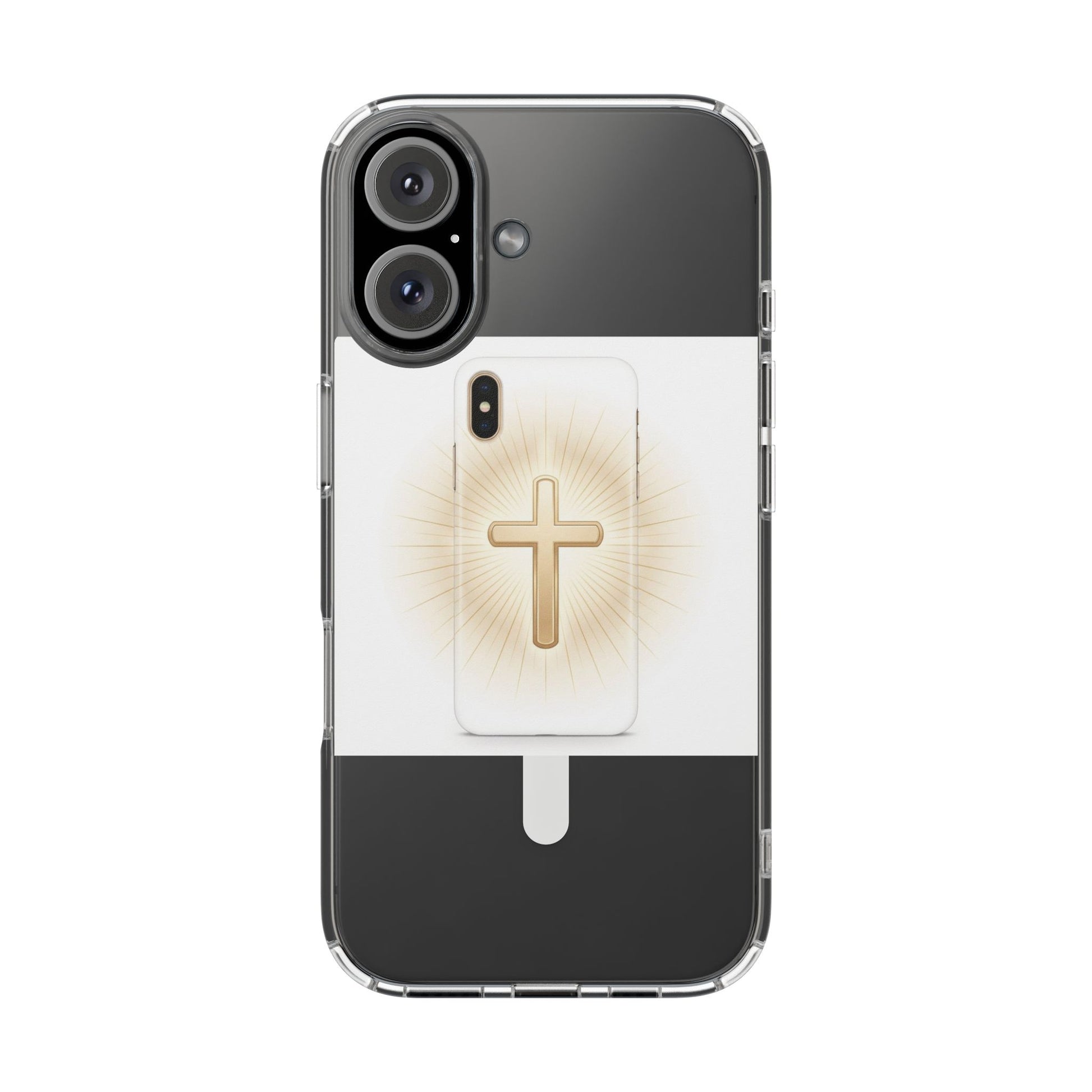 Clear Magnetic Phone Case — Gold Radiant Cross Design