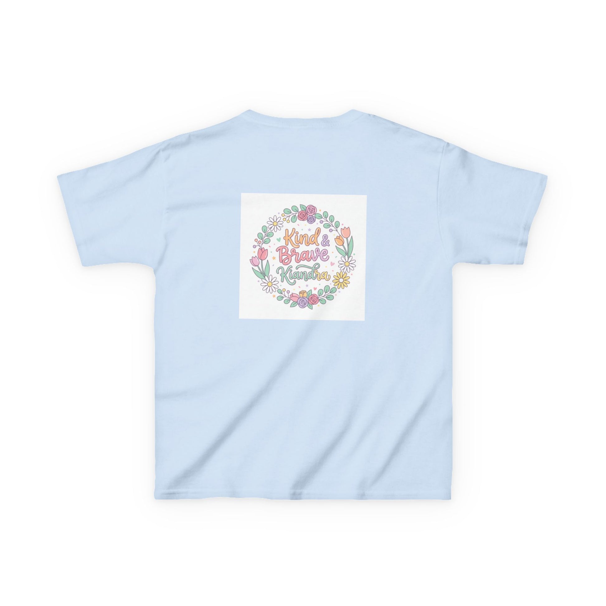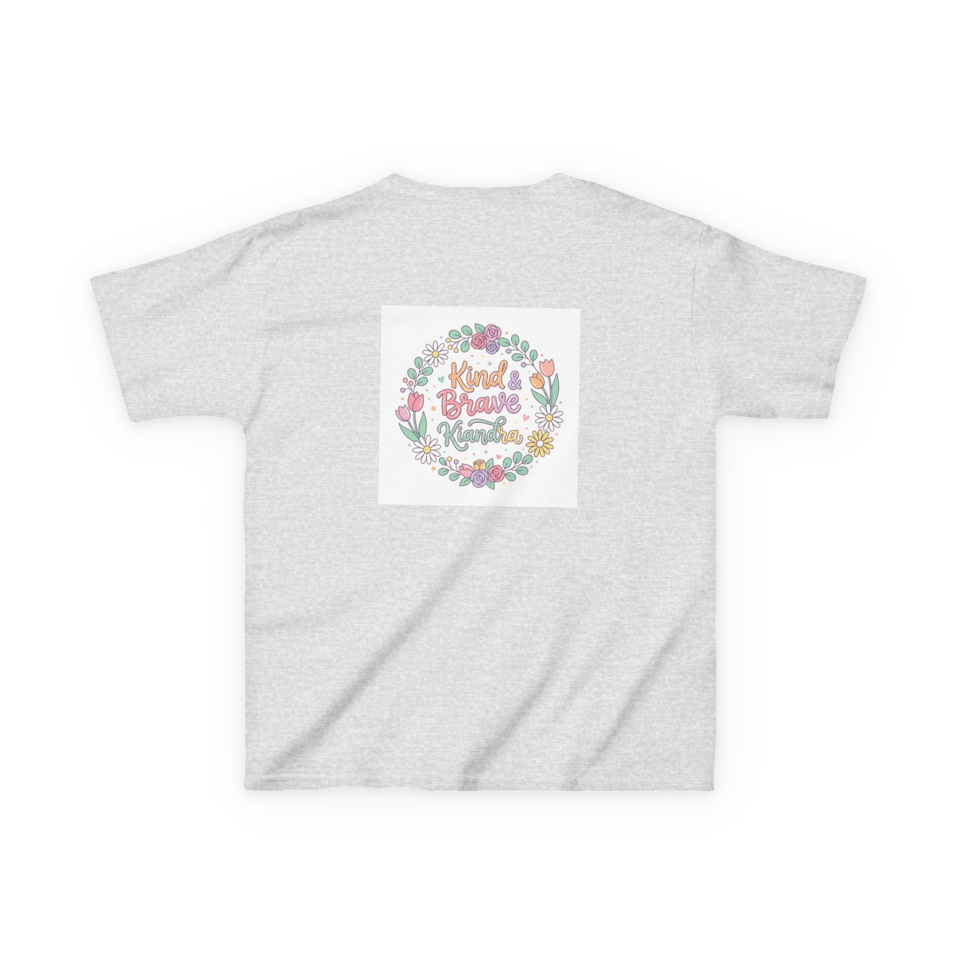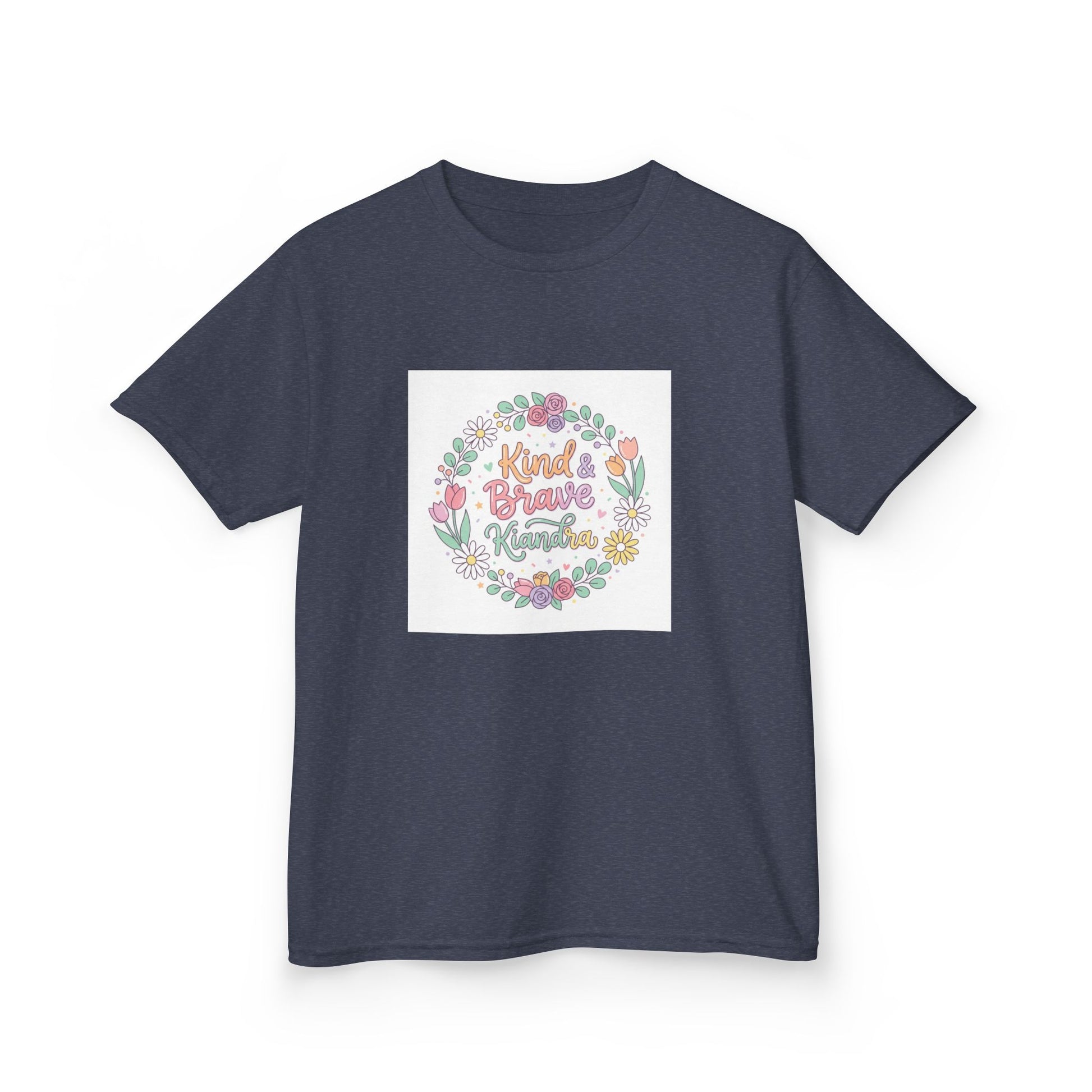 This soft, midweight kids tee carries a gentle, hand-drawn floral wreath and a warm message at its center. Lightweight but sturdy, it sits comfortably on playdates, family outings, and quiet mornings at home. The crew neckline and classic cut let little ones move freely while the pastel illustration keeps the look sweet and age-appropriate. Washed pastel colors and a subtle, centered print make it easy to layer under sweaters or wear alone on warmer days. It’s the kind of shirt that becomes a favorite — worn for school crafts, spring picnics, or when you want a little extra cheer in the day.