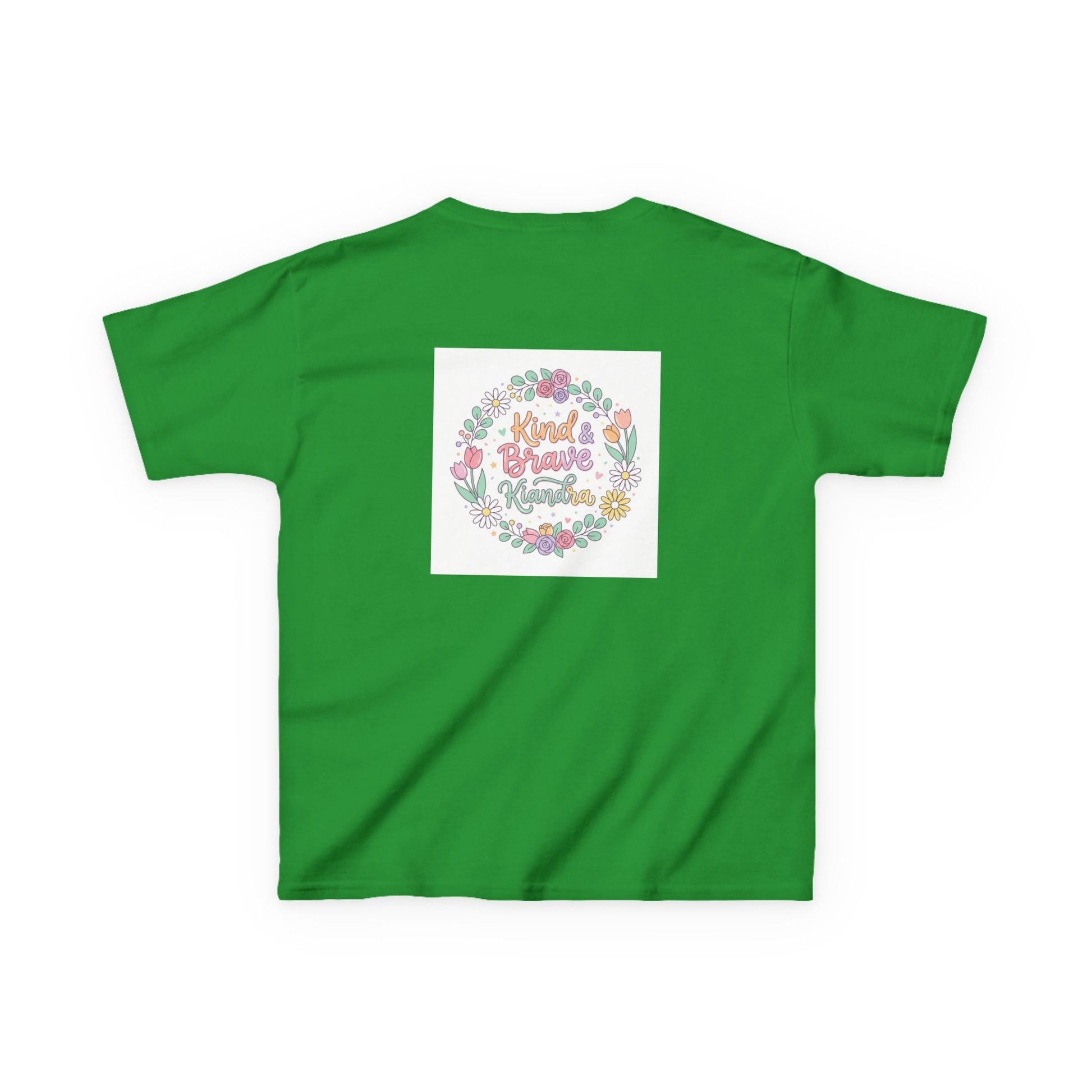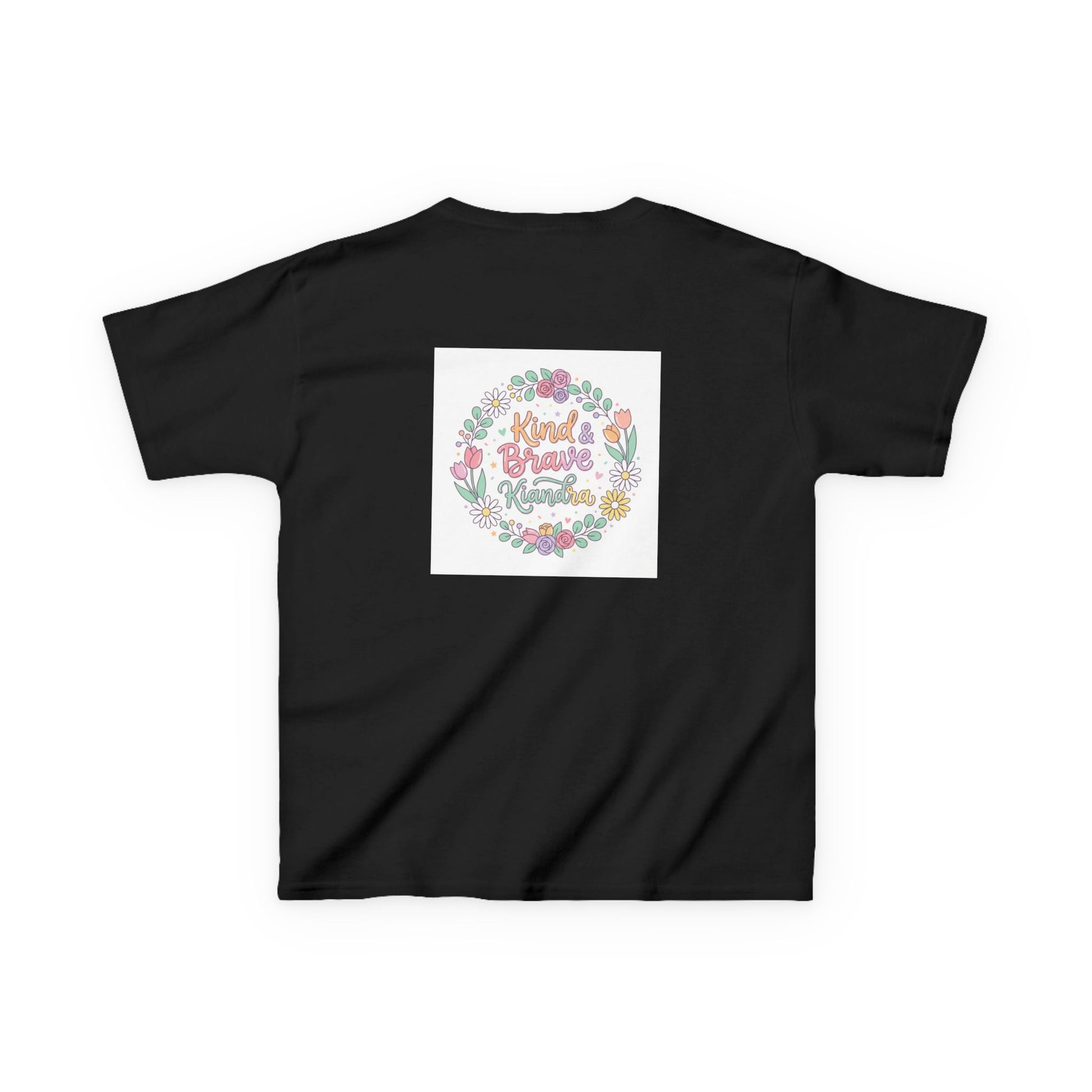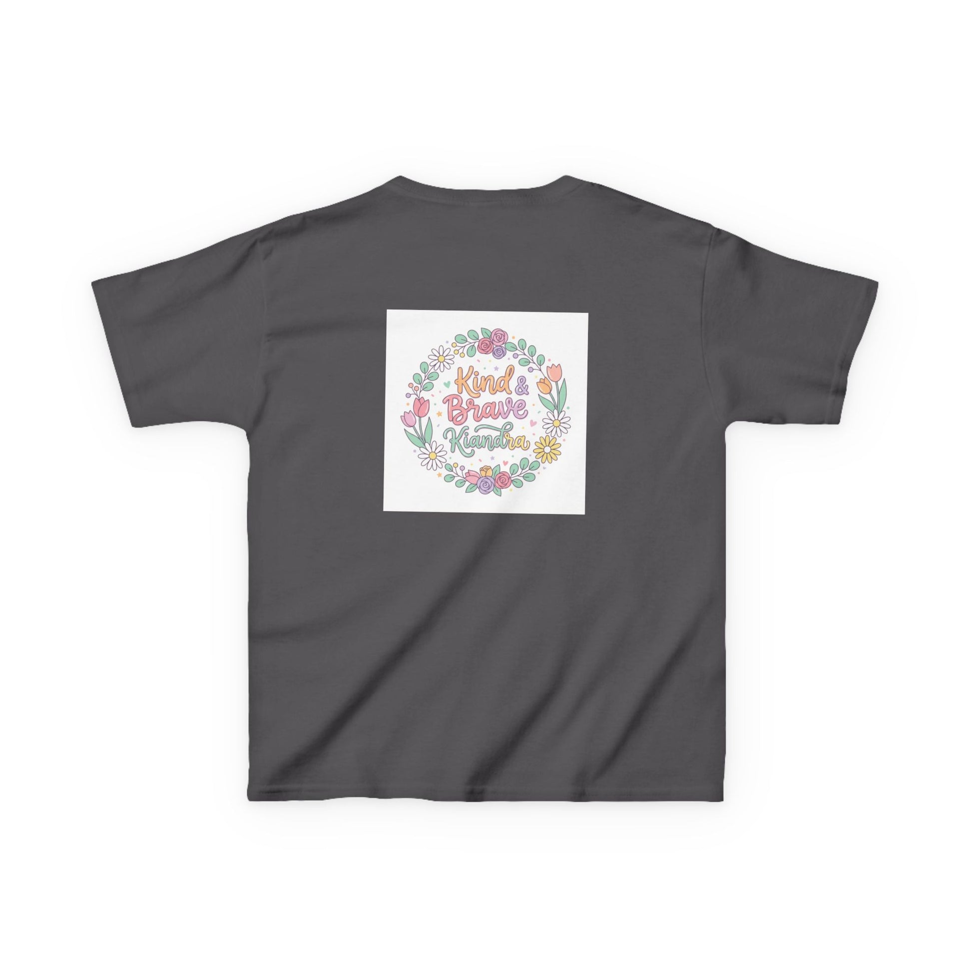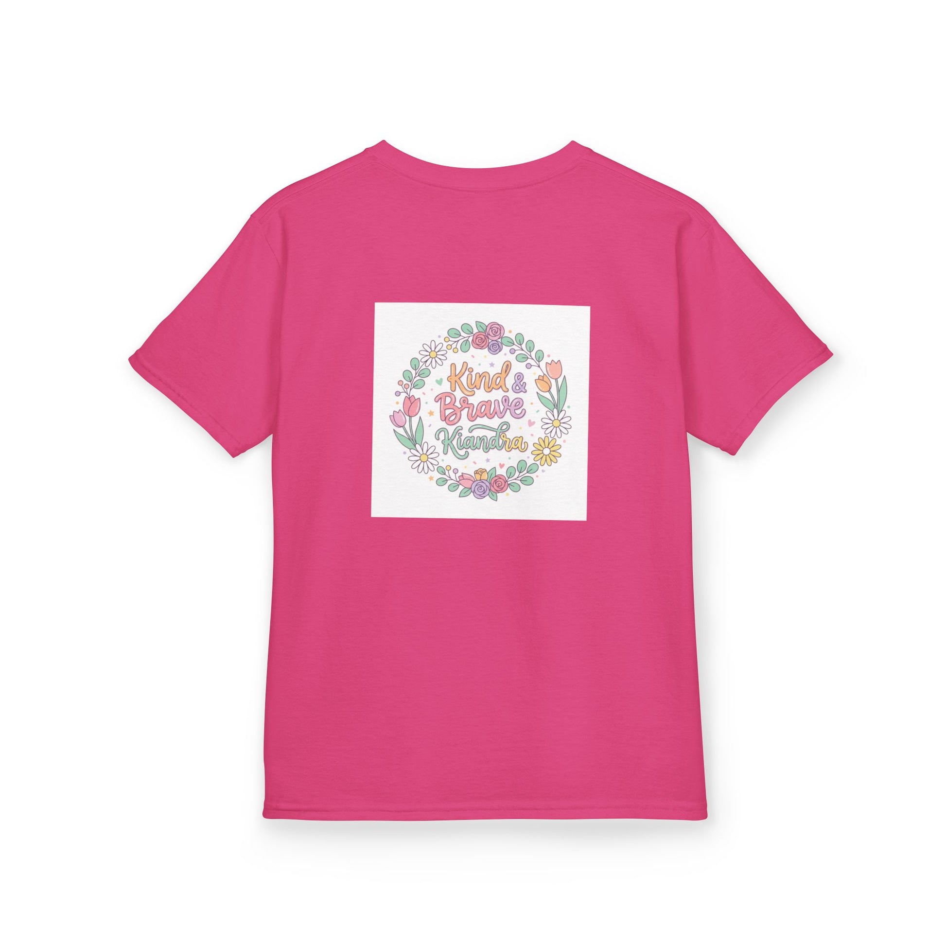 This soft, midweight kids tee carries a gentle, hand-drawn floral wreath and a warm message at its center. Lightweight but sturdy, it sits comfortably on playdates, family outings, and quiet mornings at home. The crew neckline and classic cut let little ones move freely while the pastel illustration keeps the look sweet and age-appropriate. Washed pastel colors and a subtle, centered print make it easy to layer under sweaters or wear alone on warmer days. It’s the kind of shirt that becomes a favorite — worn for school crafts, spring picnics, or when you want a little extra cheer in the day.