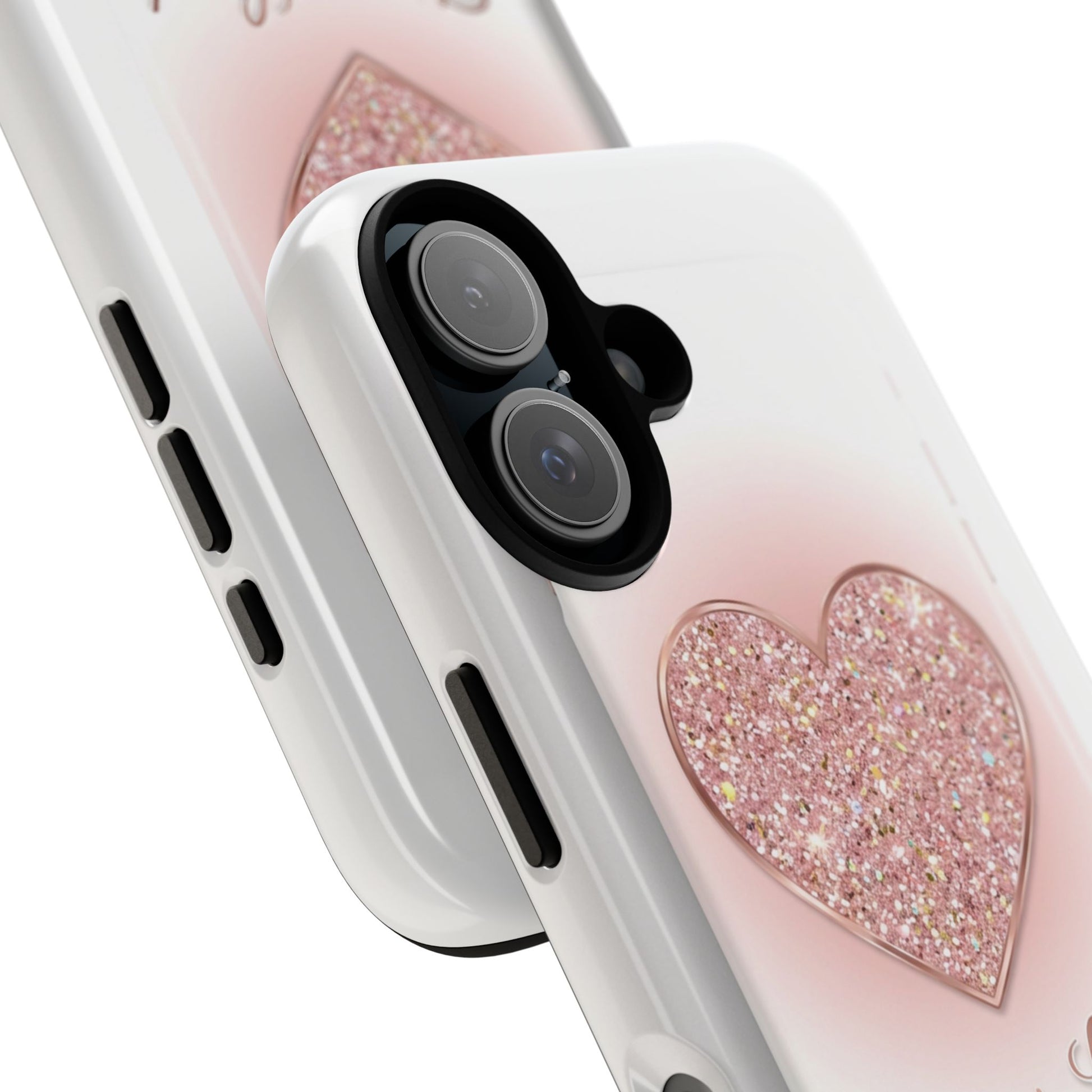 Phone Case — Pink Glitter Heart "Forever Loved" Protective Tough Case