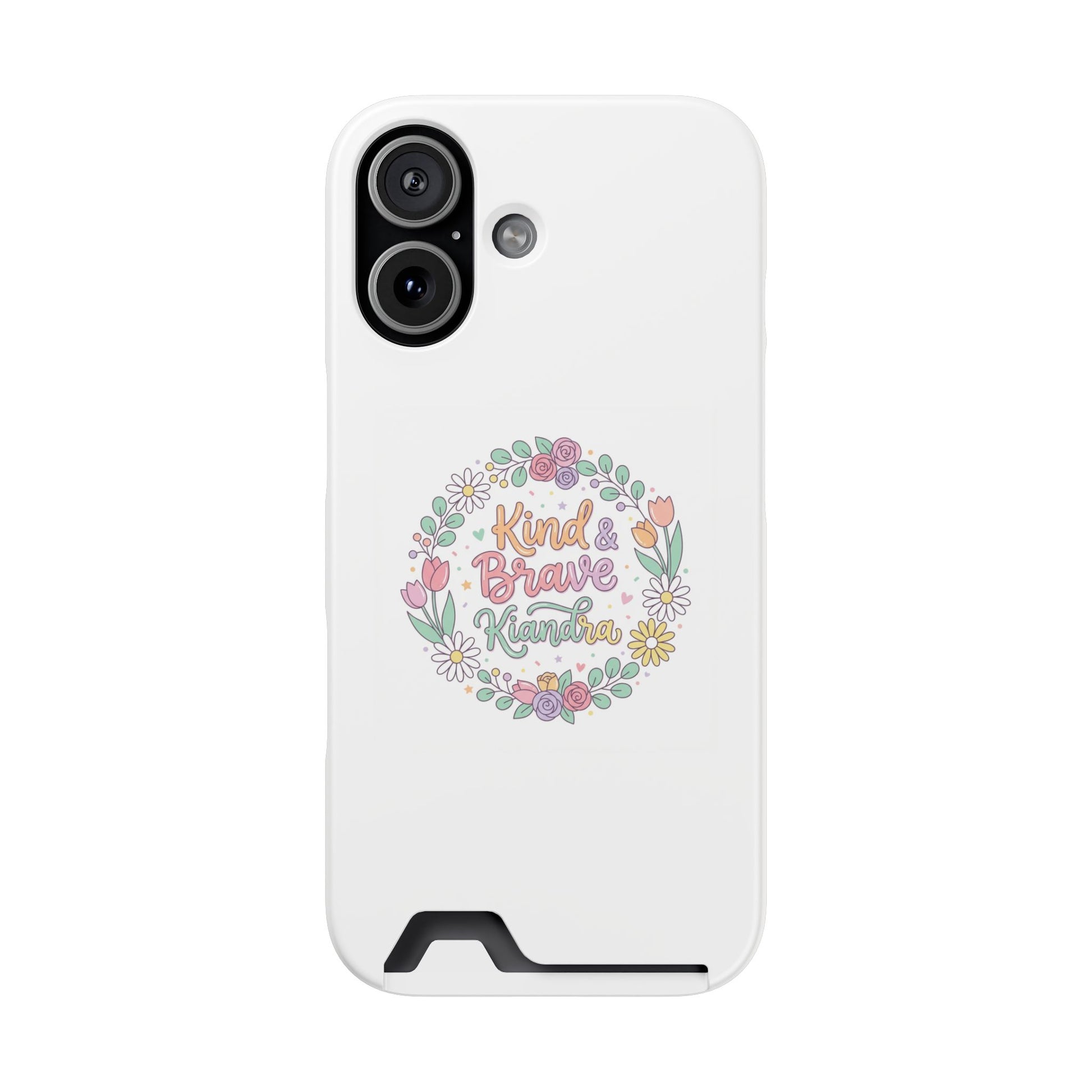 Phone Case with Card Holder — "Kind & Brave & Loved" Floral Wallet Case